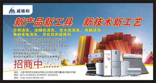 鄭州洗多多家電清洗用品**,是一家家電產(chǎn)品品種齊*的生產(chǎn)商。有著10幾年的產(chǎn)品里程,在客戶心里已經(jīng)得到了見證。面對這樣的情況,洗多多放寬政策,擴大的范圍的向*各地有能力著發(fā)出邀請函。*掉*的加盟費用,尋求的是有能力的代理商。www.baskilimendil.com 0371-63396295 63396297