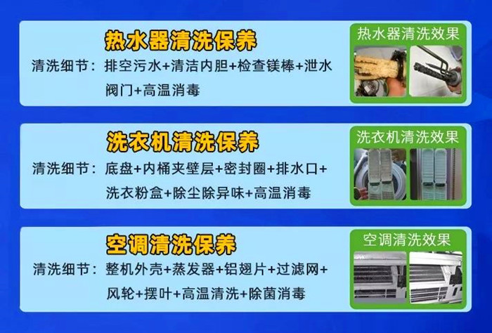 空調(diào)清洗,油煙機(jī)清洗,太陽能清洗,洗衣機(jī)清洗,冰箱清洗,煙罩清洗,空氣凈化器清洗,飲水機(jī)清洗